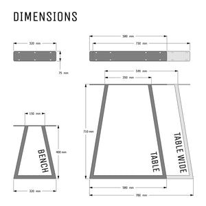 Perfect for adding a solid, industrial look to any table or bench they are added to, these sturdy box section legs use a wider 75mm steel box structure. This means they are capable of handling the largest and heaviest loads allowing you to create tables using anything from scaffold boards to thick cut timber slabs with ease!